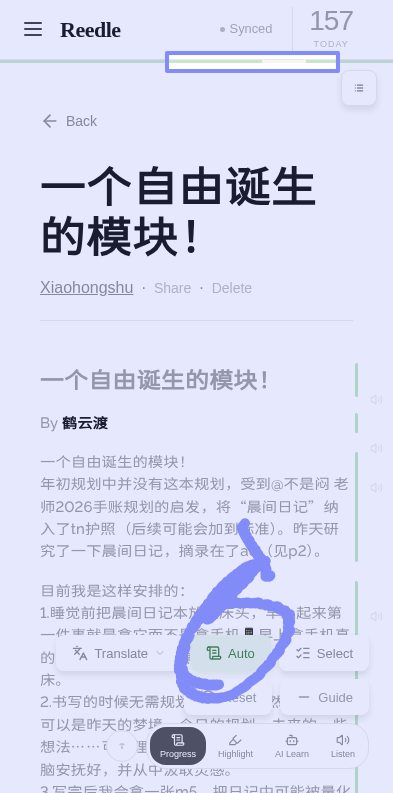 Read progress is not continuous for this article even when toggled auto
